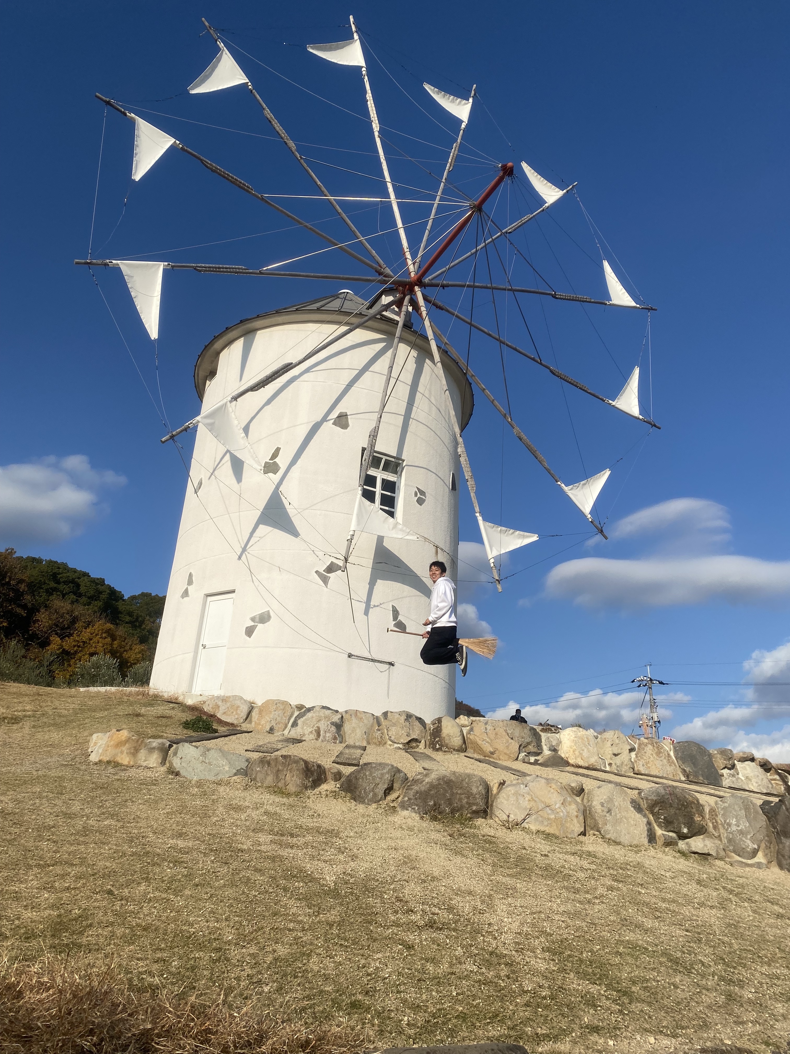 瀬戸内海を見下ろす丘にある白いギリシャ風車もあるよ。
